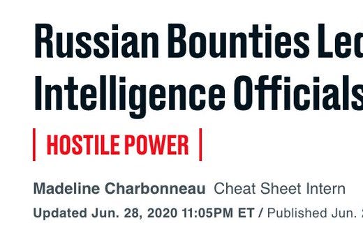 That Russia placed "bounties” on the heads of U.S. soldiers in Afghanistan was one of the most-discussed and consequential news stories of 2020. It was also, as it turns out, one of the most baseless — as the intelligence agencies who spread it through their media spokespeople now admit, largely because the tale has fulfilled and outlived its purpose.